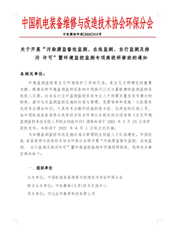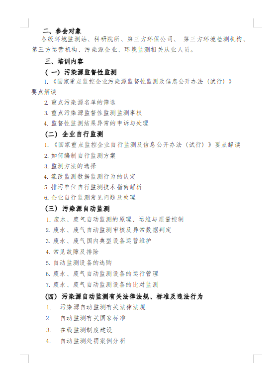 關(guān)于開展 污染源監(jiān)督性監(jiān)測、在線監(jiān)測、 自行監(jiān)測及排污許可暨環(huán)境監(jiān)控監(jiān)測專項(xiàng)高級研修班